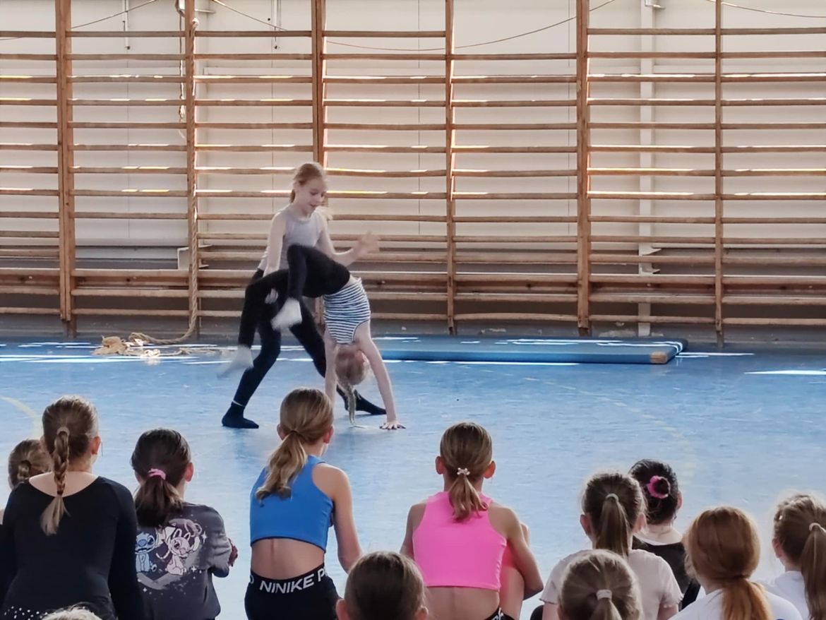 Az idei tanévben már második alkalommal került megrendezésre a tánc és talajtorna bemutató az alsó tagozaton Horváth - Szalainé Gróf Csilla tanárnő szervezésében. A program most is nagy népszerűségnek örvendett az alsó tagozatos lányok körében.